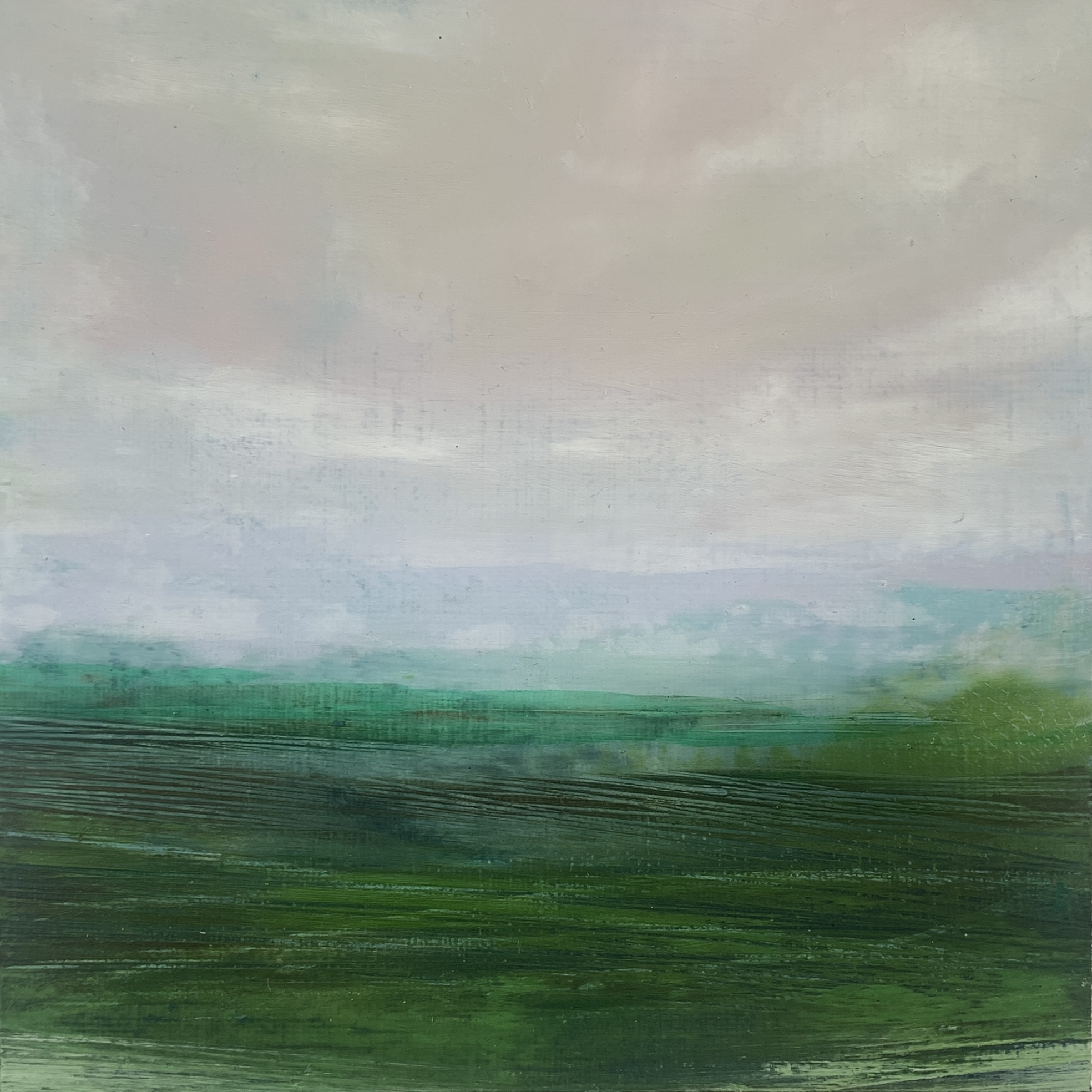 Oil & Cold Wax on paper 5×5” In a White Mount 9×9” with opening 5×5”