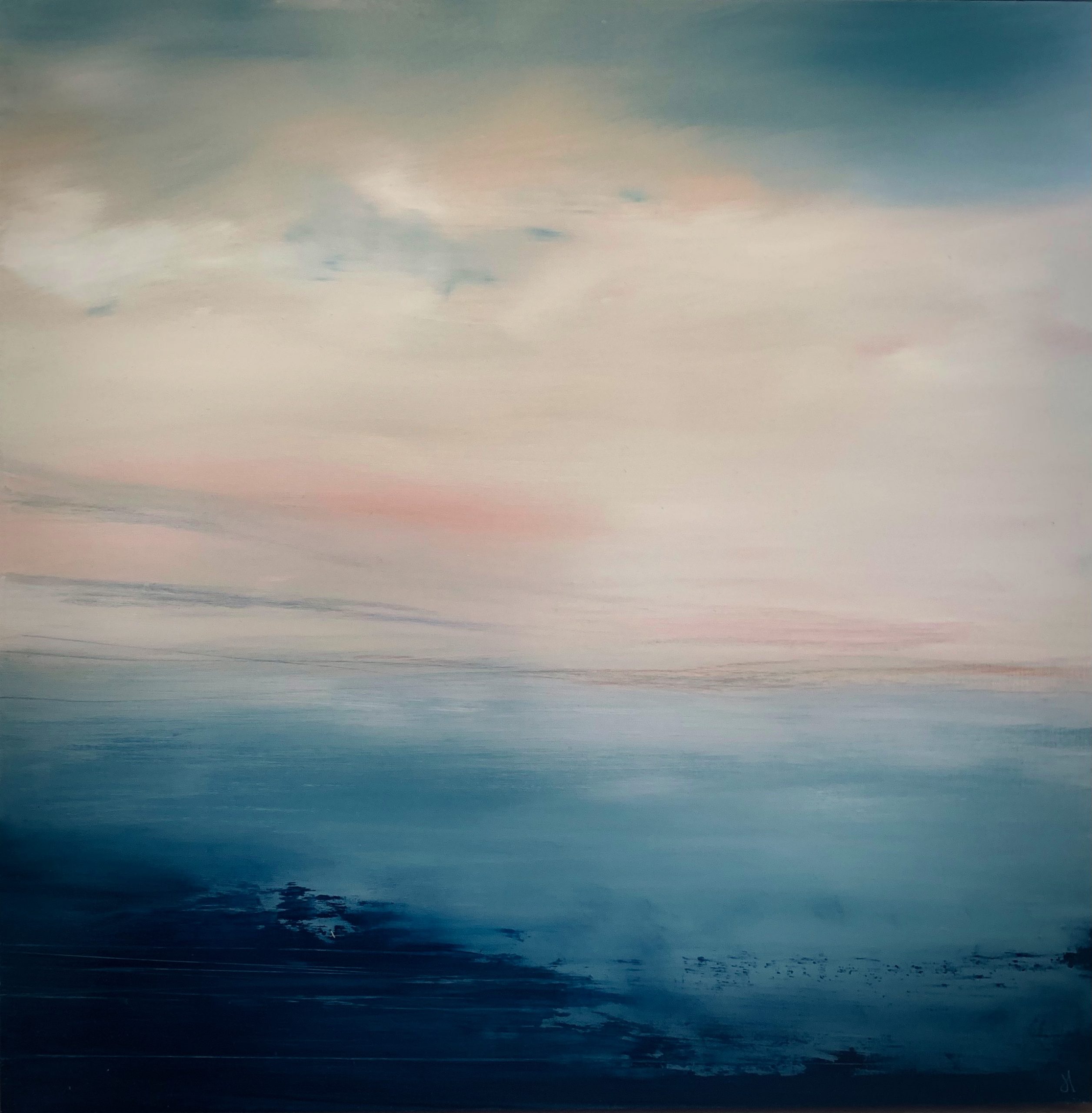 The misty tranquillity of the Atlantic coast is captured in this abstract representation of the North Coast Shore. The cloudy sky adds to the serene atmosphere of the painting.